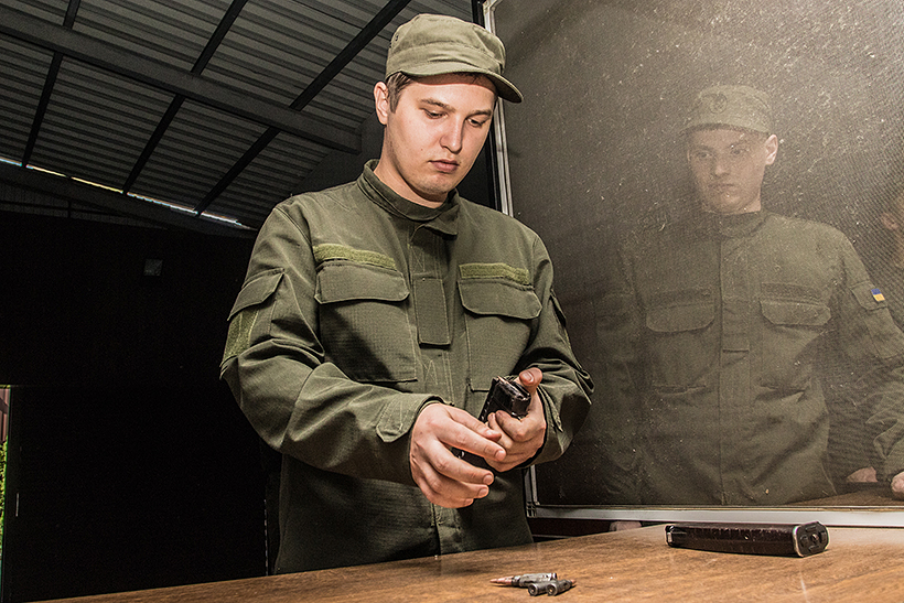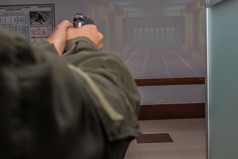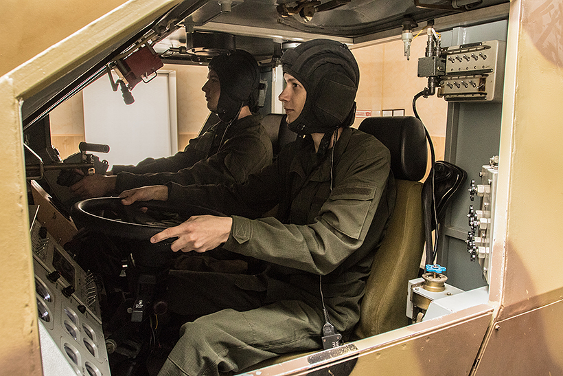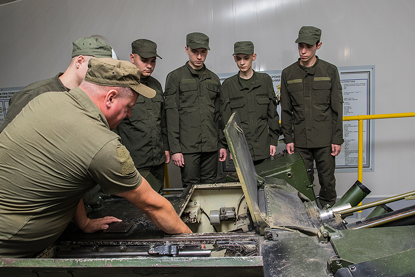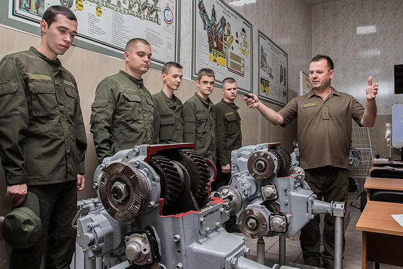 Студенти відпрацьовують питання щодо приготування до стрільби з різних положень, виконують початкові вправи стрільб з пістолета та автомата, відпрацьовують вправи з водіння бойових машин на тренажерах.