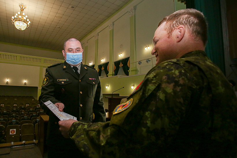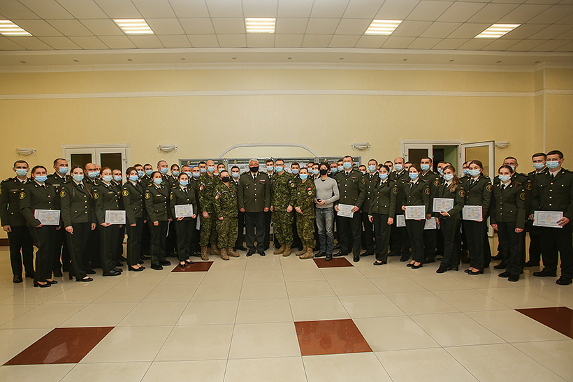 Після офіційної зустрічі в центрі культури Академії відбулось вручення сертифікатів про проходження курсу порядку управління військами 58 військовослужбовцям та службовцям Академії. Це науково-педагогічний персонал Академії та курсанти-випускники гуманітарного факультету та факультету логістики.