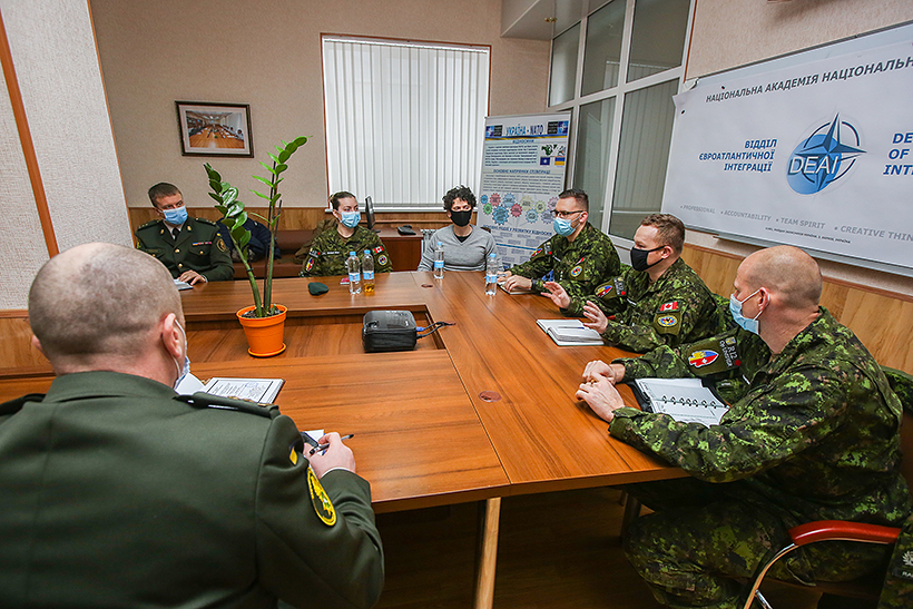 Під час зустрічі розглядалися питання щодо напрямків подальшої співпраці з представниками 12-ї ротації. Зокрема обговорили завершення розробки повноцінного курсу з порядку управління військами та його впровадження в освітні програми на кафедрах тактики та тактико-спеціальної підготовки командно-штабного факультету. Крім того, узгодили проведення короткострокових курсів з тематики логістичне забезпечення ЗС Канади для викладачів факультету логістики та надання дорадчої допомоги у вдосконаленні освітніх програм.