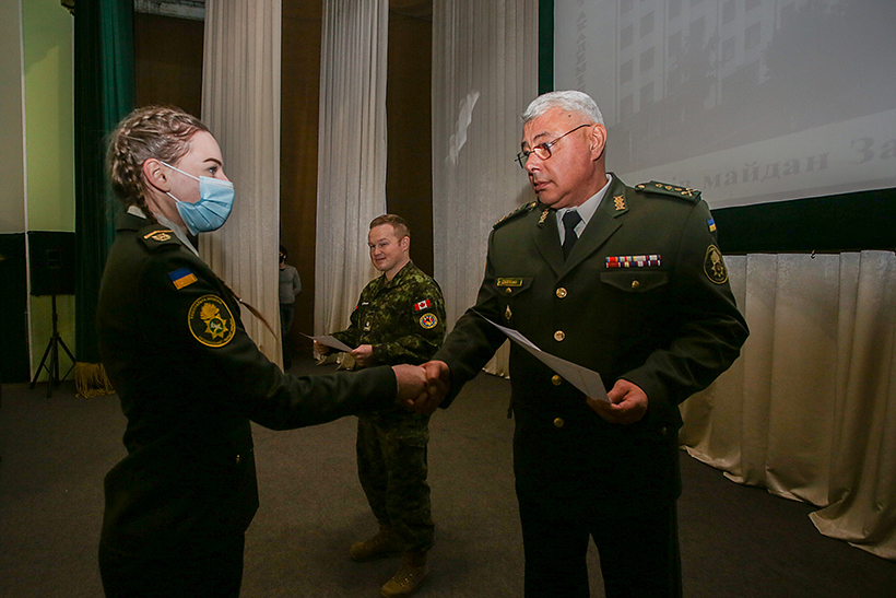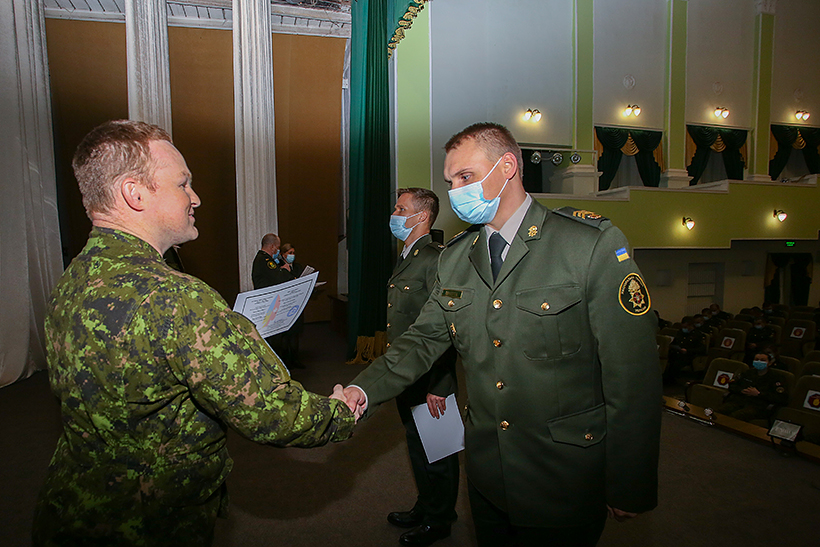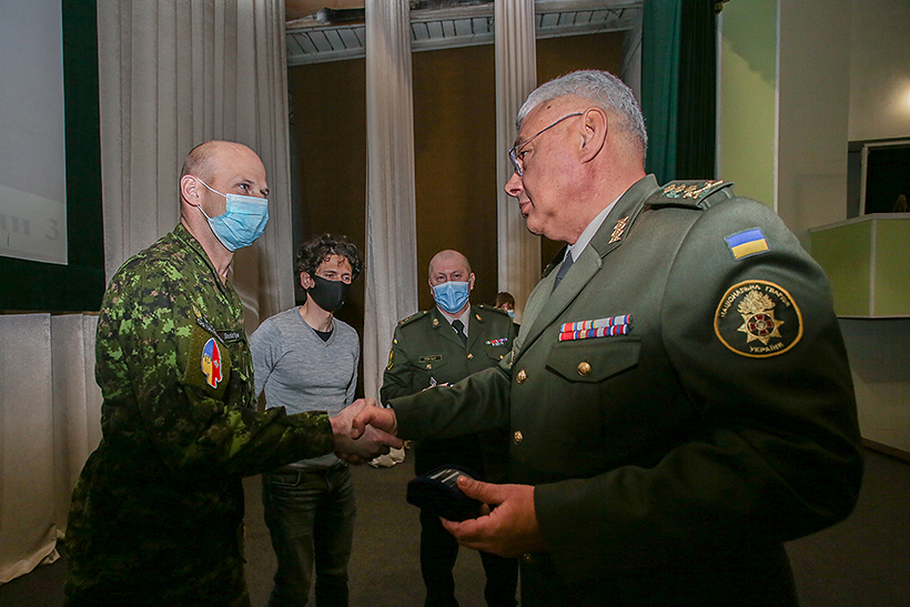«Я приємно здивований відгуками моїх колег про рівень підготовки викладачів, їх завзятістю та креативністю. Наполеглива та взаємна робота представників ЗС Канади та військовослужбовців Академії повинна втілитися у те, що викладачі вашого навчального закладу будуть самостійно проводити подібні курси для підрозділів як Академії, так і, можливо, для інших підрозділів Нацгвардії», - зазначив командир групи професійної військової освіти ЗС Канади в Україні майор П’єр-Люк Ларошель.