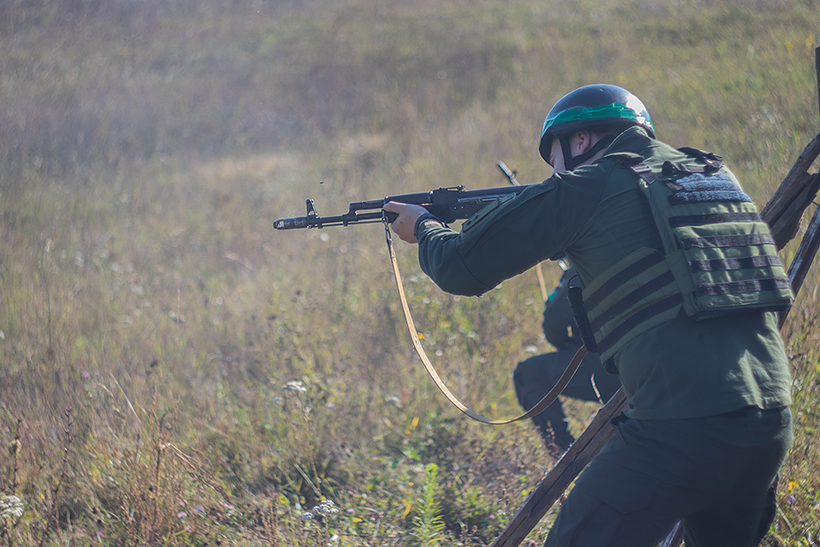 З автомата Калашникова гвардійці стріляли з положення лежачи, з коліна та стоячи.