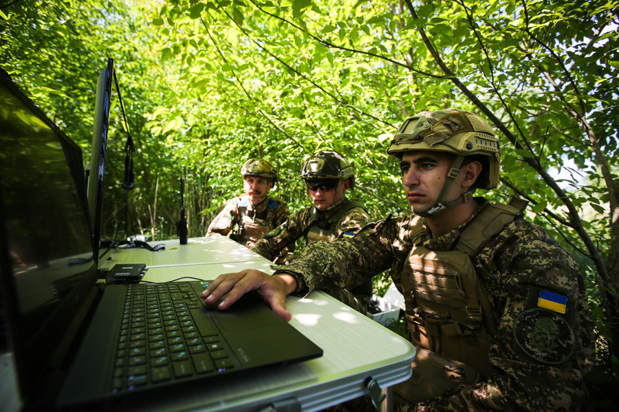 Окремим навчальним питанням була робота з екіпажем розвідувального квадрокоптера. Співпраця з екіпажем включала пошук, визначення, передачу цілевказівок, знищення визначеної цілі та підтвердження знищення за допомогою станції супутникового зв’язку Starlink.