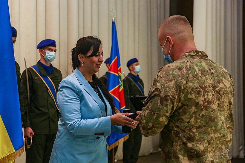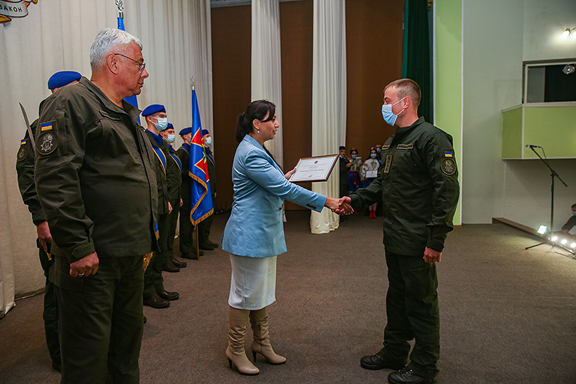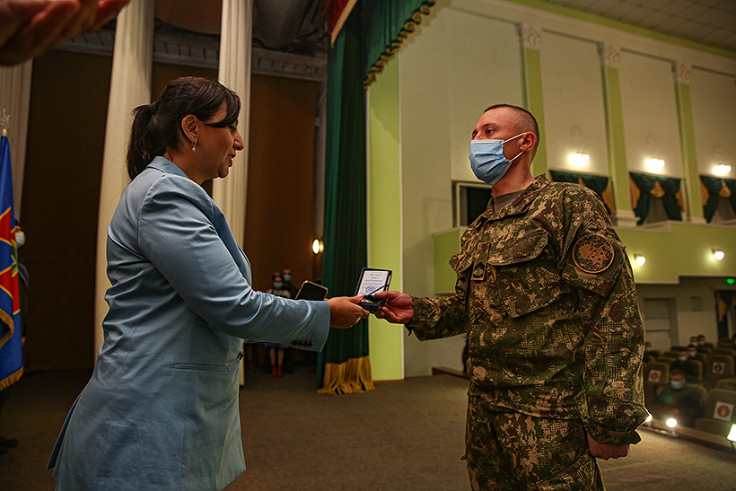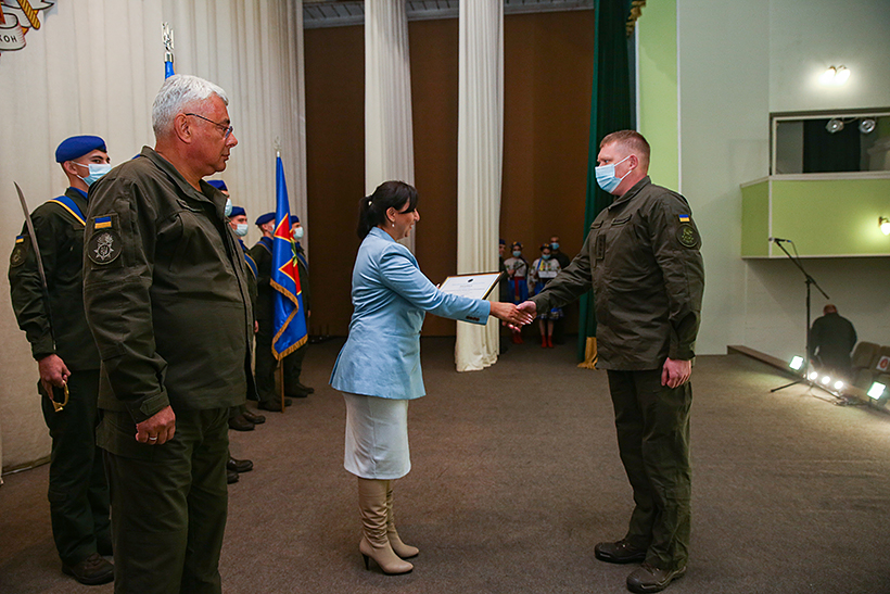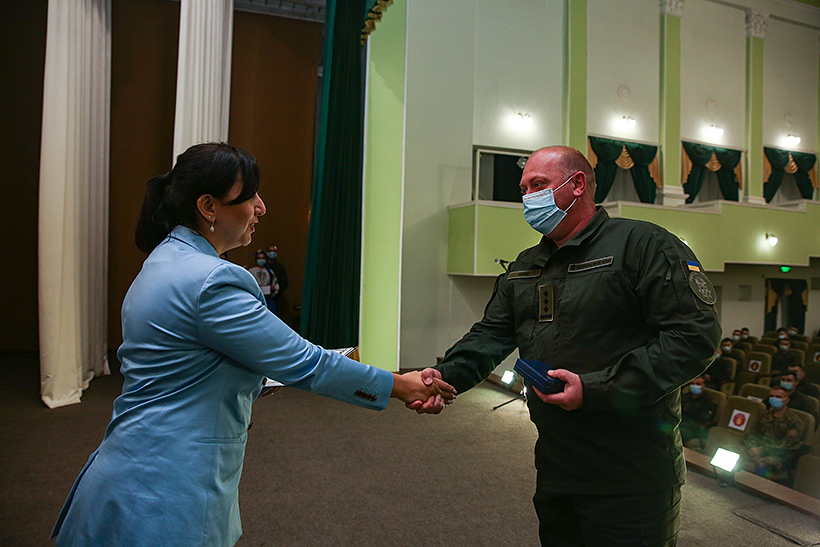 Після покладання квітів, у центрі культури, Мері Акопян привітала особовий склад та вручила нагороди вісьмом військовослужбовцям Національної гвардії України. Так, нагороджено двох офіцерів Академії та шестеро гвардійців Східного оперативно-територіального об’єднання НГУ.